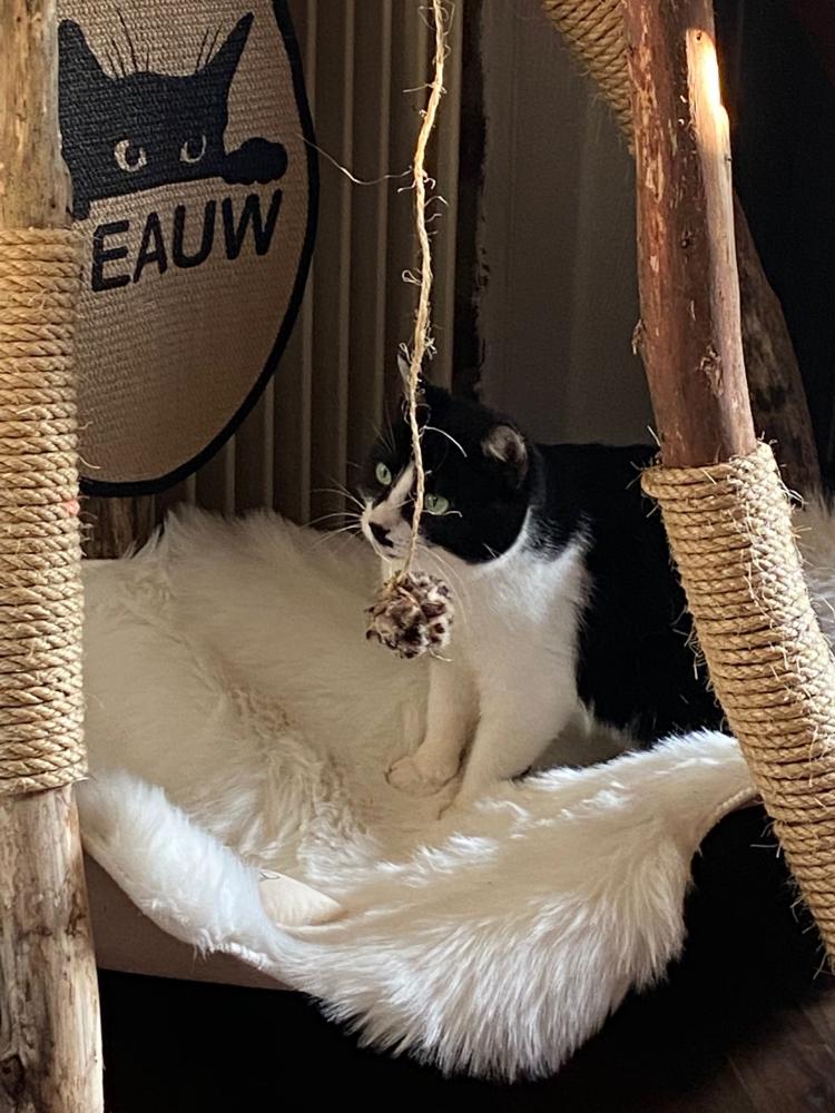 nach ein paar Wochen möchte ich mal eine Rückmeldung geben, wie es Neele (jetzt Anneliese) geht. Nach den ersten zögerlichen Tagen hat sie sich gut eingelebt und die ganze Wohnung als Alleinherrscherin in Beschlag genommen. Am liebsten thront sie oben auf der Galerie im Plüschsessel, da ist sie sicher und hat alles im Blick.