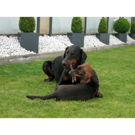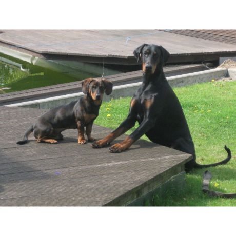 Mein neuer Name ist Anton und ich wurde von der Tierärztin auf ca. 1,5 Jahre geschätzt. Vor zwei Monaten habe ich nach einem Aufenthalt im Tierheim Rote Erde, ein tolles neues Zuhause gefunden.  Mein Herrchen Frank und mein Frauchen Julia habe ich mittlerweile sehr lieb gewonnen. Sie mich natürlich auch!  Am meisten jedoch habe ich mich über meinen großen neuen Spielkumpanen, den Dobermann Sky gefreut. Sky ist ungefähr in meinem Alter und mit ihm tobe ich am liebsten durch den Garten, gehe schwimmen oder laufe am Fahrrad. Ab und zu werde ich ein bisschen zu wild und muss von Sky wieder beruhigt werden. Aber danach bin ich wieder brav und artig. Anweisungen, die mir gar nicht gefallen, versuche ich erst gar nicht zu befolgen und möchte meinen Dickkopf durchsetzen. Doch mit viel Geduld meiner Besitzer kann ich mittlerweile "Sitz" und "Platz" machen, meistens zumindest.