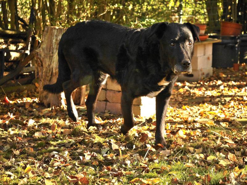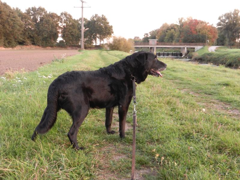 Zwei Monate ist Arko nun schon bei uns, und es wird Zeit, dass wir uns einmal melden. Wenn ich sage, dass er ein Schatz ist, erzähle ich ja nichts Neues, und so freuen wir uns nicht weniger als er, wenn es zu Spaziergängen 'rausgeht oder Streicheleinheiten verteilt werden. Vieles hat er auch schon gelernt, manches gar von selbst: so geht er (in normalen Situationen) nahezu perfekt an der Leine und lässt sich auch ohne Gezappel sein Schutznetz anlegen; wobei wir letzteres auf bekannten, unverdächtigen Wegen gar nicht mehr brauchen: er liest hier zwar interessiert die Hundezeitung oder knabbert auch schon mal an Grashalmen, aber Erde, Stöckchen, Blätter mag er nicht mehr fressen - und was anderes findet man da nicht.