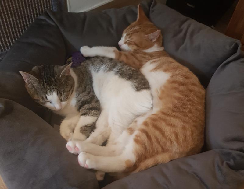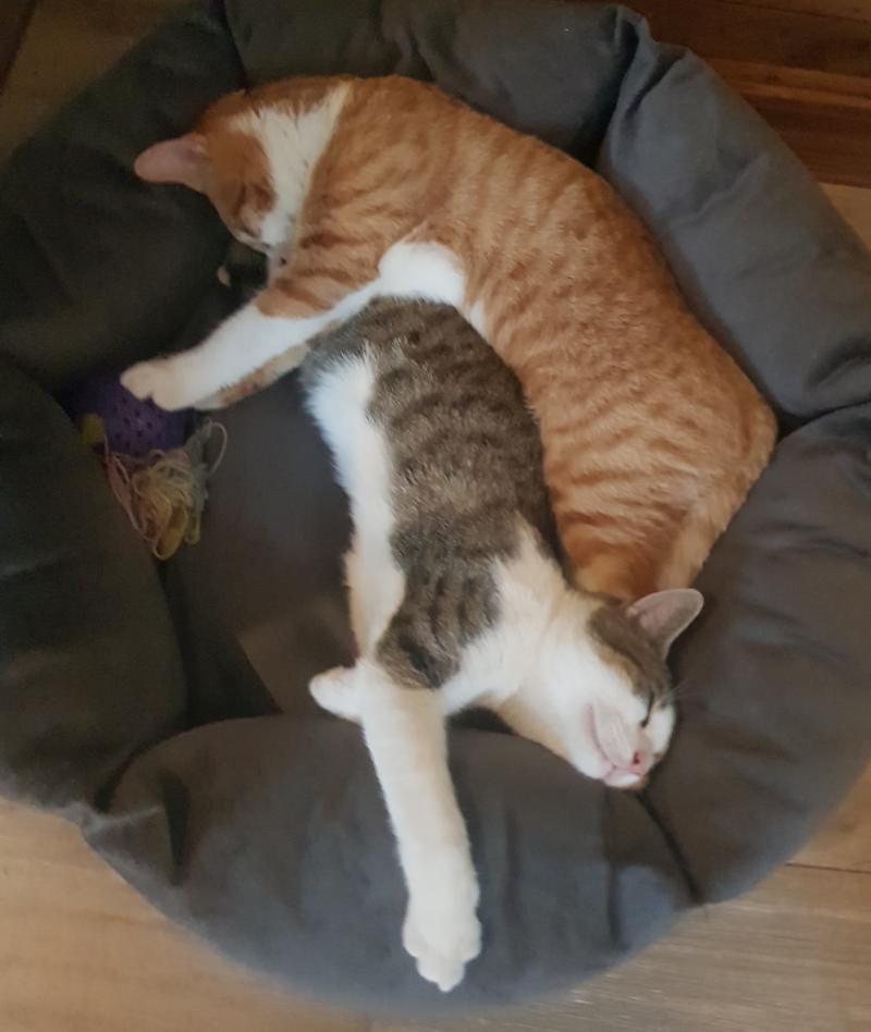 Arya und Floki (bei euch hießen sie noch Alice und Aris) sind gut bei uns angekommen. Sie fühlen sich pudelwohl, erkunden fleißig das Haus und werden von Tag zu Tag zutraulicher und kuschelbedürftiger.