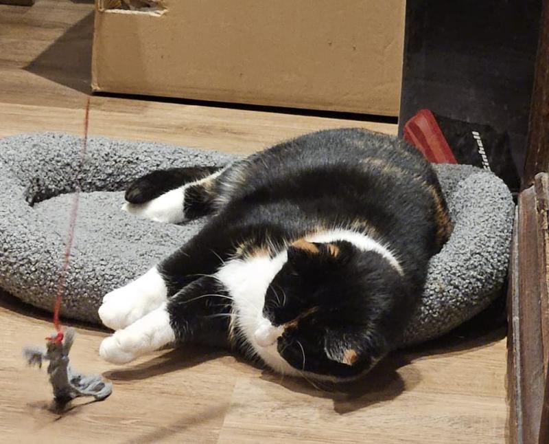 Eure Beauty - jetzt Bella- hat sich super bei uns eingelebt. Sie liebt ihr Katzenkissen und die selbstgebastelte Angel zum Spielen sowie den Katzenbaum. Gemeinsam mit uns erkundet sie immer wieder aufs Neue die restliche Wohnung. Bella ist noch sehr vorsichtig und braucht viel Zuspruch auf ihren Erkundungstouren. Am liebsten hat sie es, wenn man in ihrer Nähe bleibt. Gestern Abend hat sie sich dann das erste Mal zu uns auf die Couch gelegt zum Entspannen. Es ist eine Freude sie dabei zu beobachten wie sie immer selbstbewusster wird.