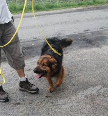 Er hat bereits gelernt, dass Autos und fremde Menschen keine Bedrohung sind und hat sich toll in seinem neuen Zuhause eingelebt.