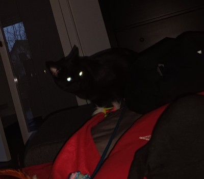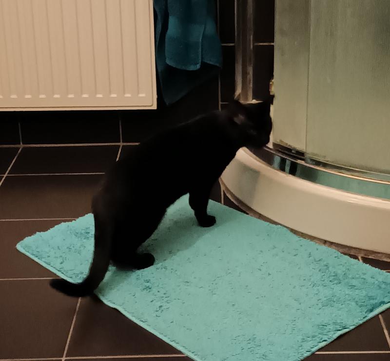 In den ersten Tagen saß er hinterm Sofa und kam nur zum Fressen und Toilettengang heraus. Er hat sich auch eine Woche lang nicht geputzt. Dafür putzt er sich seit drei Tagen wie ein Weltmeister. Wir freuen uns. Er ist weiter stubenrein und frisst gekochtes Hähnchen sehr gerne. Grins! Damit haben wir sein Herz erobert;).