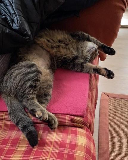 Daisy ist jetzt bei uns angekommen. Sie hat ihre Rituale und ist sehr anhänglich und verschmust.