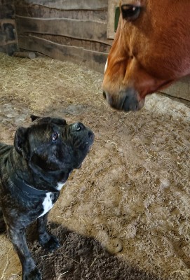 Hier gibt es viel zu tun für mich, ich bin ja jetzt Stallhilfe, Igelpfleger, Wachhund und Kuschelbär. Egal, wo Frauchen hingeht, ich möchte einfach immer nur dabei sein... Und weil ich so gut höre, durfte ich schon nach ein paar Tagen ohne Leine überall mit hin. :-)