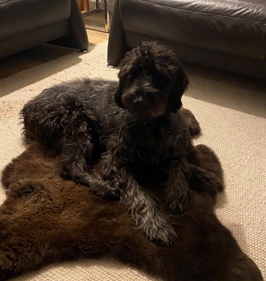 Zu Weihnachten habe ich mein eigenes Schaffell zum kuscheln bekommen, da liege ich am allerliebsten drauf, jeden Tag. Mama hat Kurse in Hundemassage und Akkupressur für Hunde belegt, jetzt verwöhnt sie mich damit regelmäßig.