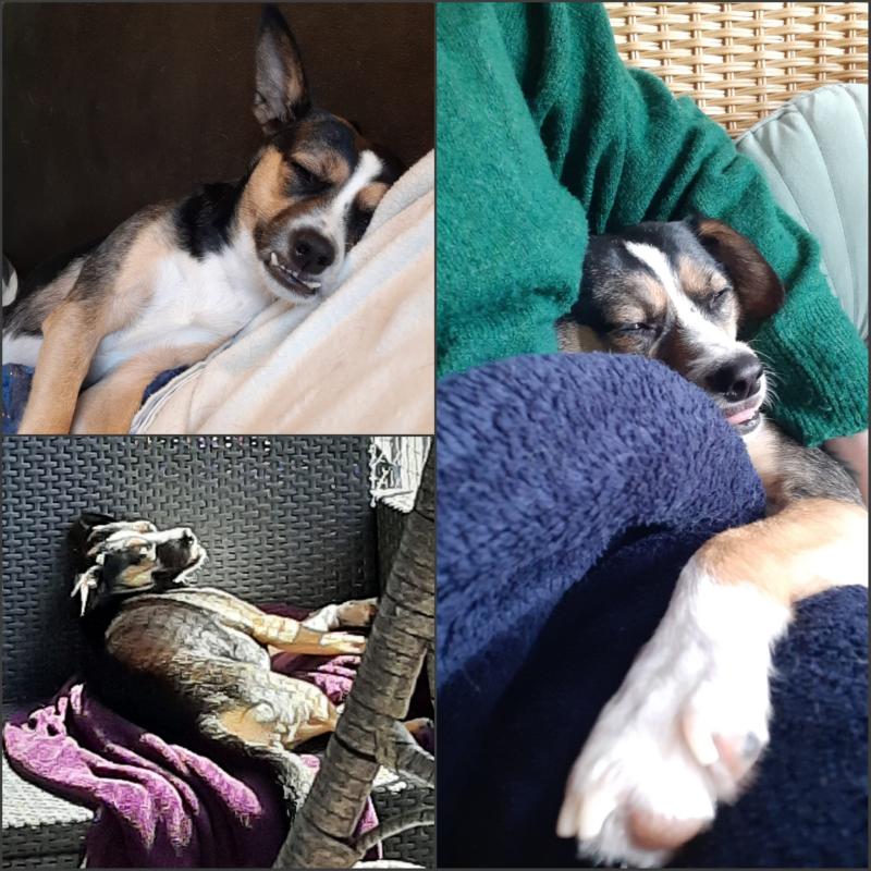 Fienchen ist heute ein Jahr bei uns. Sie hat unglaubliche Fortschritte gemacht. Anfänglich waren die Nächte unruhig, Fienchen konnte kaum alleine sein. Mittlerweile schläft sie Nachts wie selbstverständlich alleine im Wohnzimmer. Sie übernachtet sogar schon woanders.