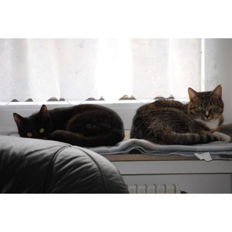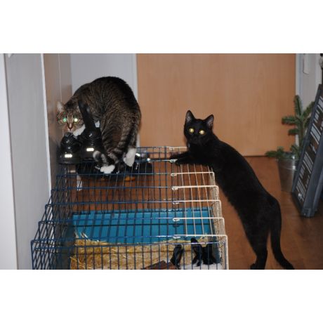 Wir sind echt froh, dass wir ihn haben. Man kann oft lachen, weil er viele Sachen erst lernen musste z. B. konnte er am Anfang keine angelehnten Türen öffnen, selbst wenn mehr als ein Spalt für die Pfote offen war. Ein bisschen schusselig stellt er sich schon an aber dafür hat er ja seine Freundin. Die kann selbst Türen öffnen, die mit einer Türklinke mit Kindersicherung und geschlossen sind. Die gibt einfach nicht nach und dann erkunden sie zusammen die Zimmer - die Küche wird immer gern genommen aber seit neustem schließen wir sie ab. Die machen dort zu viel Unsinn.