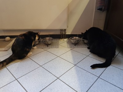 Freya hat sich hier super eingelebt, und mit der Vergesellschaftung funktioniert es auch gut... sie kuscheln zwar noch nicht zusammen, aber ich glaube, das kommt auch noch...