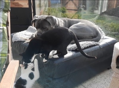 Verstehen sich prima auch mit unserem Cane Corso Jack.