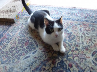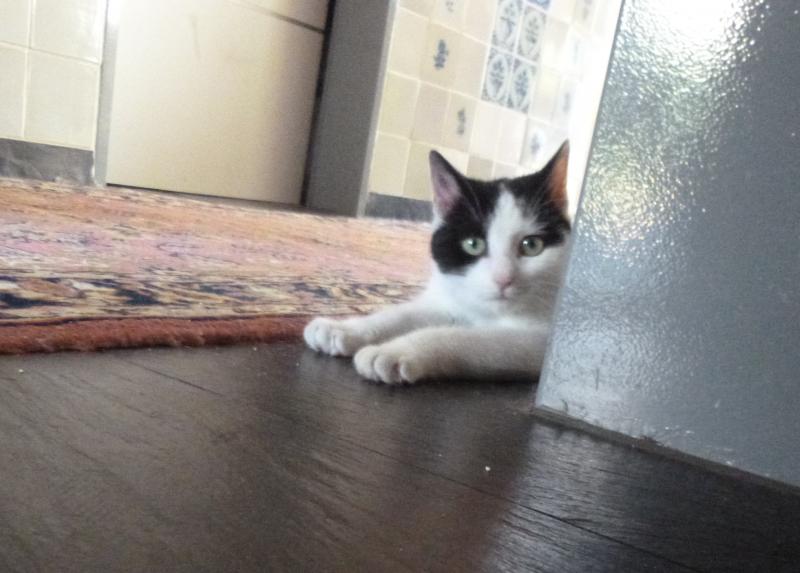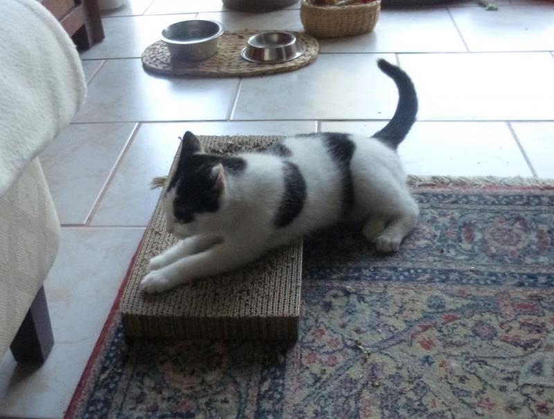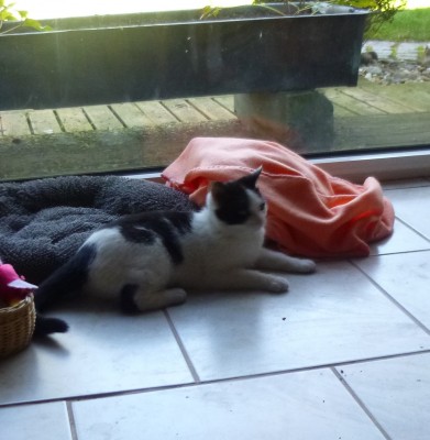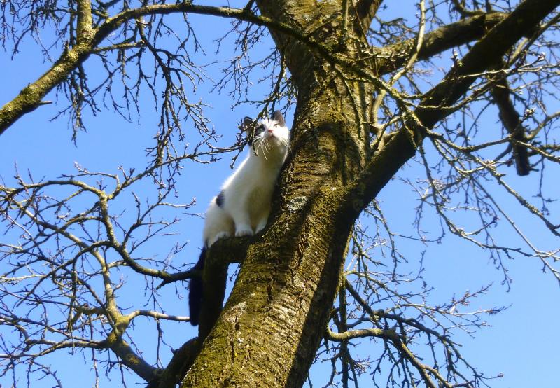 nach einer Woche ist Liesa bei uns zu hause angekommen. Sie hat inzwischen alle Räumlichkeiten in unserem Haus erkundet und auch die ersten Gefechte mit unserem Kater Bruno ausgetragen. Inzwischen sind beide gleichwertige Spielkameraden geworden. Kater Bruno lebt durch Liesa wieder auf und umgekehrt. Gestern wagte Liesa ihren ersten habstündigen Ausflug durch unseren Garten und durch den in der Nachbarschaft. Heute war sie sogar noch mutiger. Sie ist bis in die Krone unseres Mirabellenbaumes geklettert. Selbst Kater Bruno hat das sich in jungen Jahren nicht zugetraut.