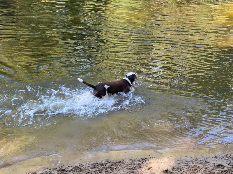 Wir sind viel in Wäldern und an Seen unterwegs - das macht sooo viel Spaß und danach bin ich immer ganz müde, weil ich einfach kein Ende finde, wenn ich einmal ins Wasser darf.