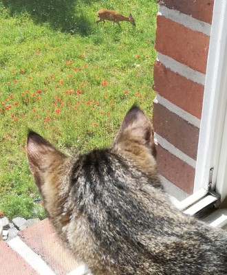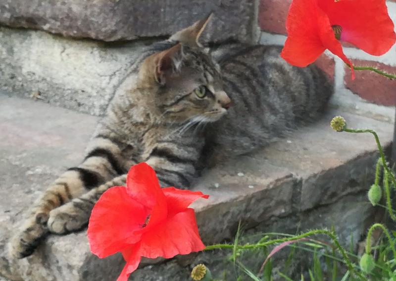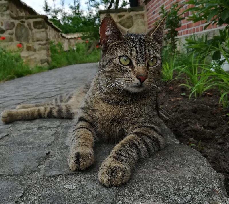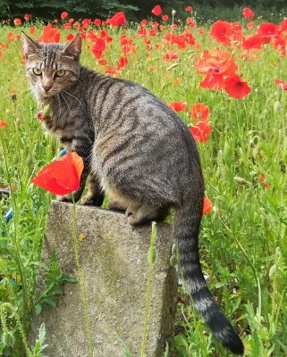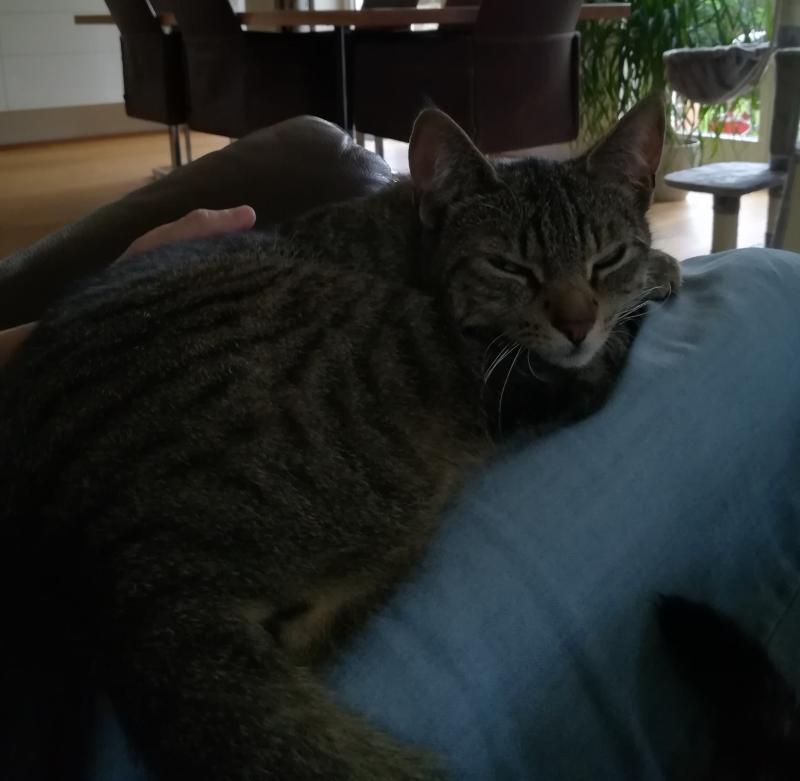 Nach ein paar Tagen konnten wir Mika auch schon nach Draußen lassen. Zuerst sind wir zusammen gegangen, jetzt, wo sie sich sicherer fühlt und unsere zwei anderen Katzen kennt, erkundet sie auch allein die Umgebung. Momemtan ist sie ganz fasziniert von den ganzen Insekten , besonders die Grashüpfer haben es ihr angetan. Eine Maus hat sie scheinbar noch nichgt gefangen, aber das kommt bestimmt bald. So erlebt sie vieles und es wird ihr nicht langweilig. Sie ist zu uns von Anfang an sehr zutraulich, sucht Nähe und Kontakt, mag es, wenn man mit ihr spricht und sie kurz schmust, sie ist auch ziemlich gesprächig. Mika mag es nicht, wenn sie zu lange und intensiv gestreichelt wird, aber das ist ja auch ok und sie zeigt uns das ganz sanft. Sie ist eine sehr freundliche Katze, die einem im Spiel nicht weh tun will, da ist sie echt vorsichtig und kratzt oder beisst nicht fest zu.