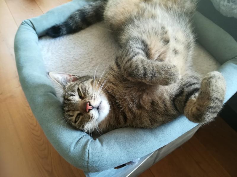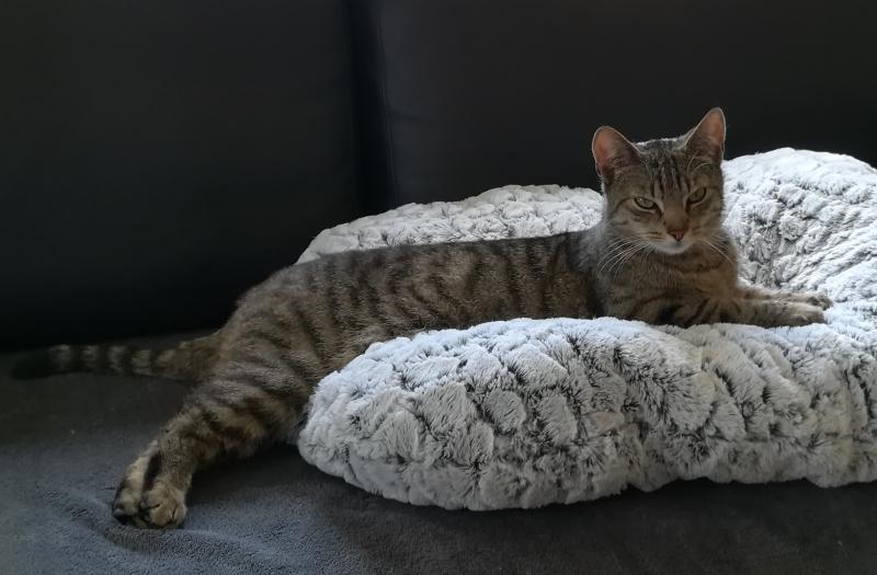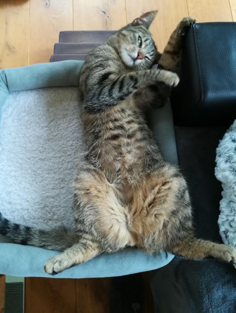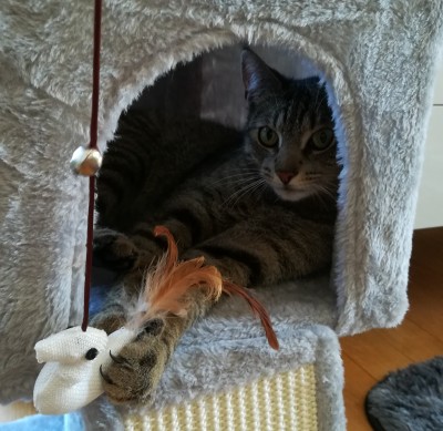 Mika ist jetzt seit zweieinhalb Wochen bei uns und hat uns und das Haus vom ersten Tag an erobert! Sie fühlt sich sehr wohl und sprüht vor Energie, die sie hier gut ausleben kann. Besuch wird auch direkt freudig begrüßt und alle sind ganz angetan von der kleinen Süßen, die sich dann immer gerne zu uns gesellt. Sie spielt, tobt und rennt ausgiebig - zum Glück haben wir sehr viel Platz- danach liegt sie dann ganz entspannt auf dem Sofa , Kratzbaum, Kuschelkissen usw. Alle möglichen Schlafplätze werden genutzt.