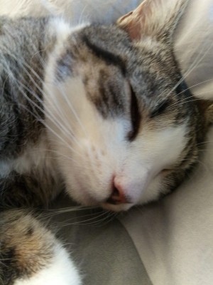 Im Oktober holten wir Morle zu uns. Sie kämpfte noch ein paar Wochen mit dem Katzenschnupfen. Jetzt aber geht’s ihr richtig gut. Sie hat sich hier super eingefügt und verteidigt Haus und Hof auch gegen große Hunde!