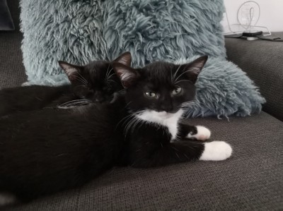 Beide toben den ganzen Tag beim Spielen, sind immer zu einer Kuscheleinheit zu überreden und sind kerngesund.