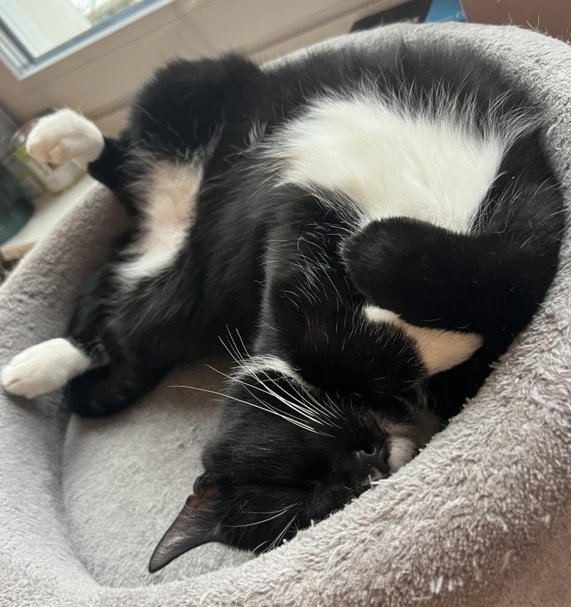 Seine täglichen Schlaf-Yoga Positionen und sein großer Appetit sorgen bei uns immer für ein Schmunzeln. Er zeigt sich bei uns als lässiger aber auch neugieriger und äußerst selbstbewusster Mitbewohner, der für unsere bereits vorhandene Katze Toffifee der perfekte Zweitkater ist. Sie sind jetzt noch keine besten Freunde aber es wird von Tag zu Tag besser. Auch wenn Toffifee mal ihre 5 Minuten hat und durch die Wohnung tobt, bringt Neo wirklich nichts aus der Ruhe, es sei denn, er tobt mit. Neo ist wirklich sehr verspielt und begeistert sich für fast jedes Spielzeug.