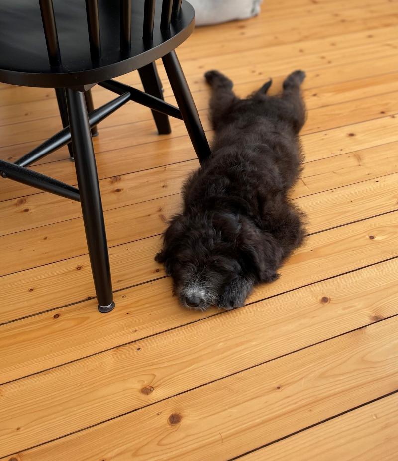 Ein großer Vorteil während der letzten Tage war, dass er tatsächlich schon super stubenrein ist. Wir hatten nur eine Handvoll kleine Pipi-Unfälle vor lauter Aufregung. Alles andere hat er bisher souverän angekündigt und macht dann im Garten sein Geschäft.