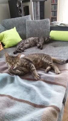 Hier ein paar Fotos von Pooh in seinem neuen zu Hause. Er scheint sich gut eingewöhnt zu haben und fühlt sich schon ziemlich wohl. Er ist total lieb und verschmust, überall dabei und gibt bei allem seinen Kommentar dazu, gesprächiger Kater. Die Vergesellschaftung mit unserem Kater Joda hat auch gut geklappt, wie man sieht. Heute morgen hat Pooh uns damit überrascht, das er Türen öffnen kann, müssen wohl erstmal die Etagentür abschließen, damit er nicht früher als geplant den Garten erkundet.