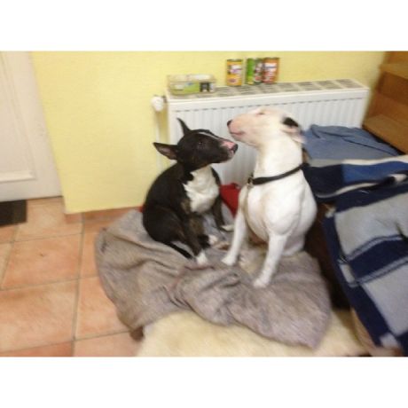 Doch dann kam ein Anruf aus Tielenhemme, das liegt bei Hamburg, von einer Dame die Rico auf der Suche nach einem Zweithund zu ihrer Bullterrier-Hündin im Internet entdeckt hatte. Nach vielen Telefonaten machte sie ich mit ihrer Hündin gemeinsam auf den langen Weg ins Tierheim Rote Erde um Rico kennen zu lernen.