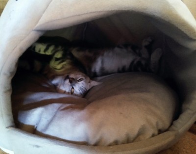 Seit zwei Tagen darf ich den Garten erkunden. Wenn mir etwas nicht geheuer ist verstecke ich mich in meiner Höhle ;-).