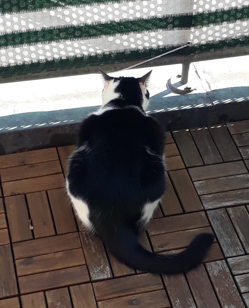 Ab dem ersten Tag hat sich Sammy bei uns pudelwohl gefühlt. Er genießt es, auf der Couch oder seiner Decke zu liegen oder vom Balkon aus unter dem Sichtschutz her die Umgebung zu beobachten.