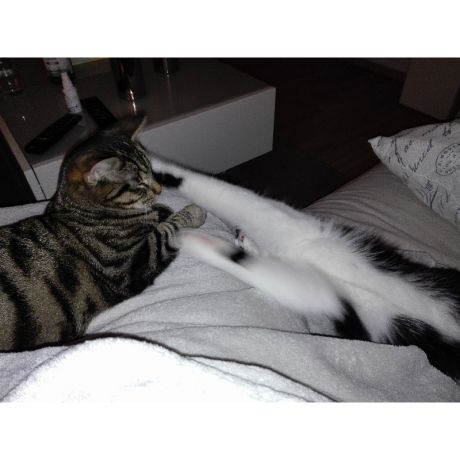 Sid hat sich super bei uns eingelebt. Sogar mit unserem Teufel Lilly klappt es erstaunlich gut. Die beiden spielen viel und schmusen sogar schon.