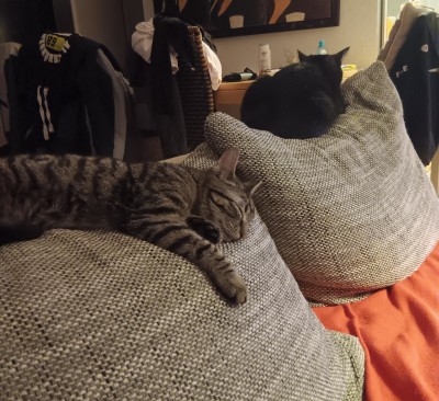 In den ersten beiden Nächten habe ich separat in einen Zimmer geschlafen 😅 Meine große Freundin war am Anfang sehr skeptisch und hat mich angefaucht, wenn ich angelaufen kam 😉 Das Futter wollte sie auch nicht teilen aber mittlerweile klappt das ganz gut 👍