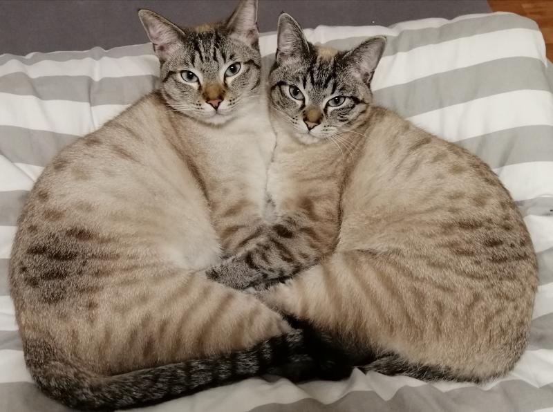 Das hier sind Amy und Luke. Ein siam-mix Geschwister Pärchen (geb. März 2019, 5 Jahre alt) mit blauen Augen zum dahin schmelzen. Die beiden sind ein Herz und eine Seele und wie man es bei Geschwistern so kennt, kebbeln und zicken sie sich auch ganz gerne an (können nicht mit und nicht ohne ) Sie sind so gleich, und dennoch Grund verschieden in ihren Charakter Zügen ( Bei Interesse genauere Infos gerne dann dazu). Es sind reine Hauskatzen (die immer nur mal kurz auf die Terrasse kommen), aber trotzdem sind Sie sind gechippt. Die beiden waren Anfang September noch bei einer Routine Untersuchung und haben ihre Wurmkur bekommen. Sie sind selbstverständlich auch kastriert/ sterilisiert. Leider muss ich die beiden schätze aus gesundheitlichen Gründen abgeben, was mir sehr schwer fällt. Die beiden hatten noch nie wirklich Kontakt zu anderen Tieren oder Kindern. Daher kann ich dazu nicht wirklich viel sagen und ist schwer einzuschätzen. Gerne hätte ich für meine beiden Stubentiger nur das Beste. Gerne ein Haus, vllt. Im grünen in einer ruhigen Gegend, sodass sie vllt. Sogar raus könnten. Gerne auch eine Familie, wo sich jeder mal Zeit für die beiden nehmen kann, denn sie sind nicht nur verspielt, sondern auch sehr verschmust und dienen gerne mal als Wärmflasche. Gerne würde ich die beiden auch zwischendurch mal besuchen kommen. Das wäre mir wichtig. Aus Tierschutz Gründen, gebe ich dir beiden nur für eine Schutzgebühr ab, die nicht verhandelbar ist. Ggf. Kann über die Übernahme von Kratzbaum etc. Verhandelt werden (bei Interesse). Falls ich was vergessen habe, oder Fragen sind, gerne jeder Zeit melden.