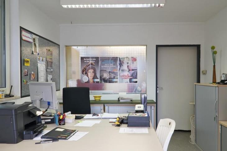 Hinter der rechten Tür befindet sich das Büro der Tierpfleger, hinter der linken Tür die Geschäfsstelle des Tierschutzvereins.
